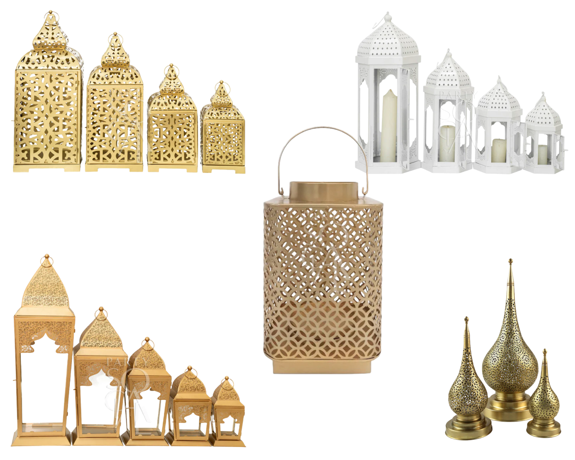 To further enhance the Moroccan atmosphere of Casablanca Beach Club, carefully curated floor lantern styling can be introduced to add warmth, texture, and authentic visual storytelling throughout the space. Elegant metal lanterns in varying heights and intricate patterns can be placed along walkways, lounge areas, and key focal points, casting soft ambient light that complements the venue’s palette and creates a relaxed, luxurious glow. Beyond illumination, these decorative pieces act as sculptural accents that frame the guest journey, bringing depth, intimacy, and a refined North African aesthetic that elevates the overall design of the evening.