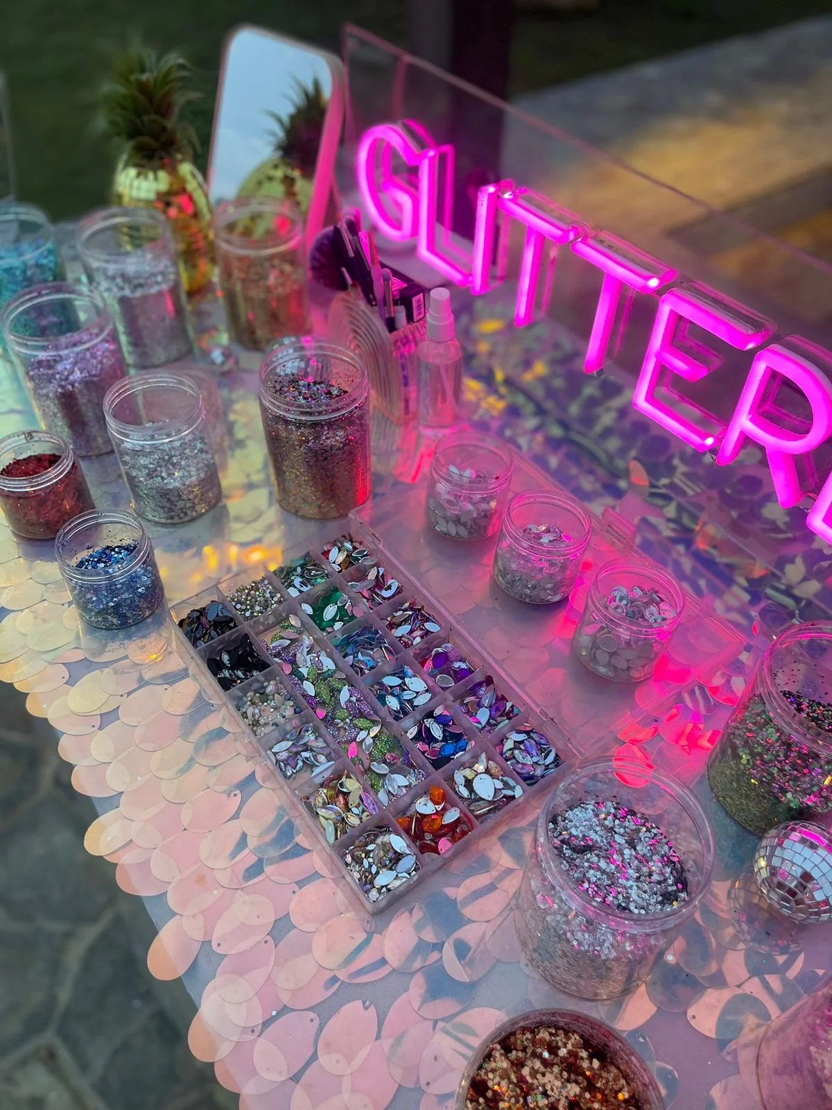 Adds a touch of playful glamour and effortless sparkle to any event, offering guests a fun and stylish beauty experience throughout the celebration. Hosted by two professional glitter artists, the station provides bespoke looks using high-quality products, from subtle shimmer accents to bold, statement designs that catch the light beautifully.