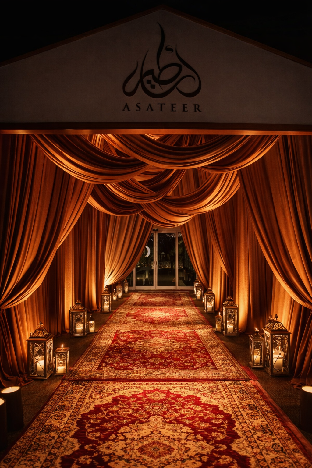 The opening experience within the Asateer Tent is carefully designed as a guided journey, ensuring guests naturally flow through the space while discovering each element of the event in a seamless and engaging way. Rather than gathering in one area, guests are gently led along a curated pathway that reveals a series of entertainment moments, design features, and interactive experiences along the route. This thoughtful layout encourages exploration, keeps the energy evenly distributed, and ensures that every guest enjoys the full breadth of what has been created. By choreographing movement as part of the experience itself, the tent becomes a living narrative—dynamic, immersive, and continuously unfolding—setting the tone for a vibrant and well-paced evening ahead.