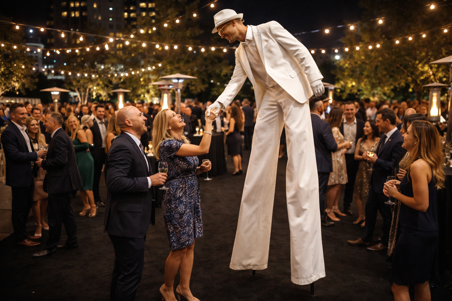 Our Stilt Walkers bring instant spectacle and elevated presence to any event, creating striking visual moments from the very first glance. Towering gracefully above the crowd, they move through the space with elegance and confidence, drawing attention, guiding guests, and enhancing the atmosphere with theatrical flair. Styled to suit the theme of the occasion, stilt walkers are perfect for grand welcomes, roaming interaction, or standout photo opportunities—adding scale, energy, and a sense of wonder that transforms the event environment.