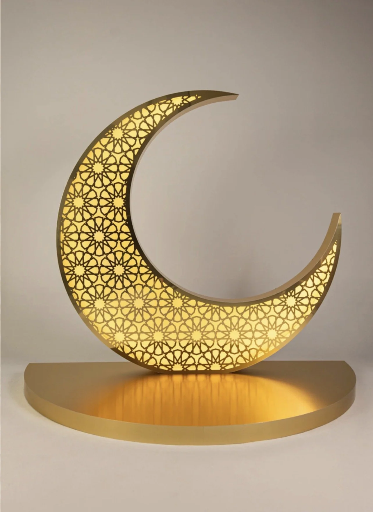 For the gala’s visual identity, we propose a suite of Arabian-inspired design elements that blend opulence with warm hospitality. Drawing inspiration from the attached references, the aesthetic features intricate lattice patterns, carved archway silhouettes, rich amber and gold tones, and an abundance of warm, atmospheric lantern lighting. Hanging metalwork lamps with delicate perforated patterns cast beautiful shadows across the space, while clusters of oversized vases, palms, and textured fabrics build depth and authenticity. To anchor the experience and provide a striking photo opportunity, we suggest a luxurious photo wall framed by ornate arches or carved panels, layered with warm candlelight, lush florals in deep jewel tones, and golden accents that echo traditional Middle Eastern craftsmanship. This backdrop not only serves as a statement piece within the venue, but also reinforces the immersive Arabian theme—creating a moment that feels both regal and contemporary, perfect for capturing and sharing the elegance of the evening.