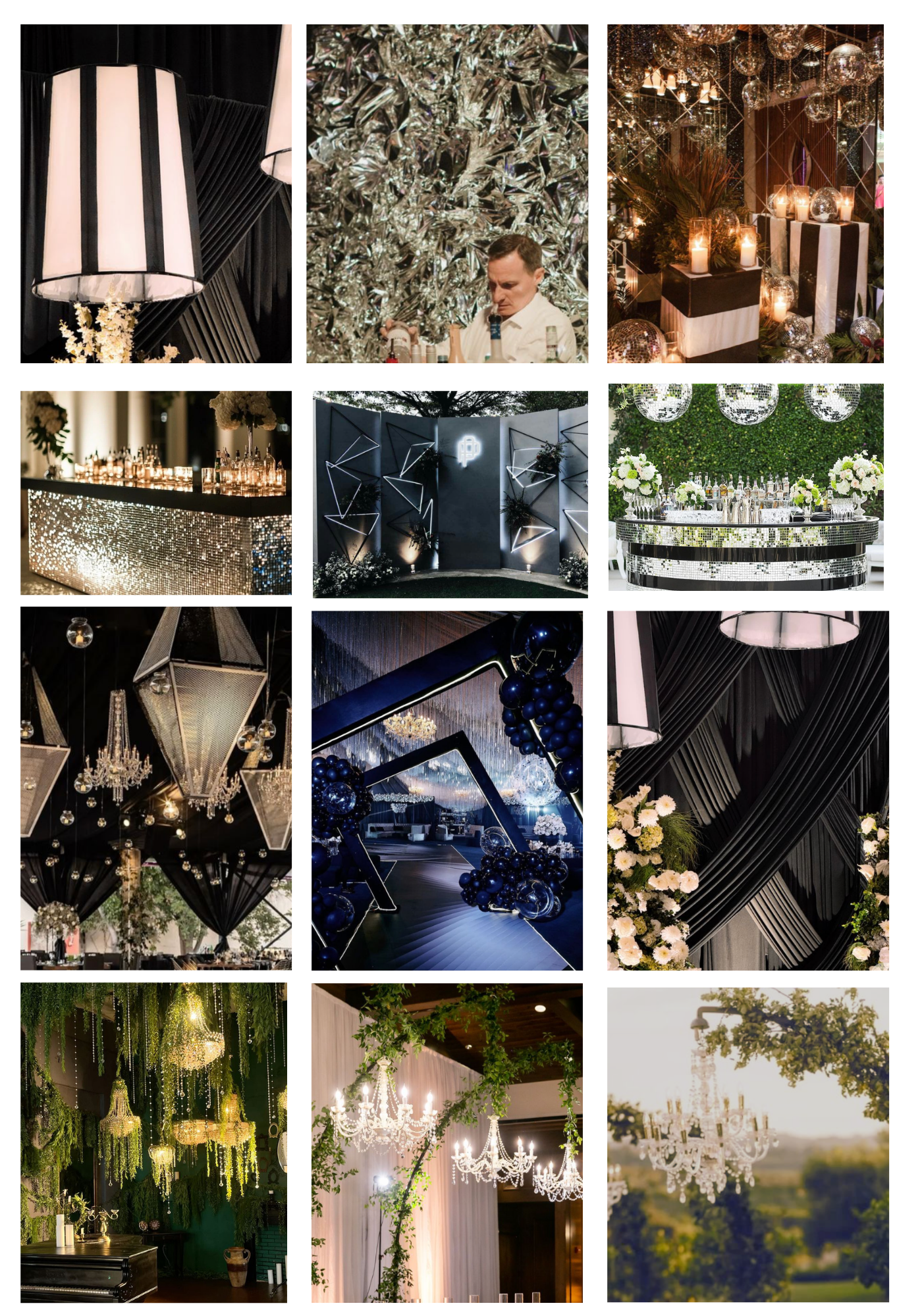 The Black Diamond Gala styling embraces a refined monochrome aesthetic, where sleek black and crisp white tones create a sense of timeless sophistication, elevated by the freshness of lush green accents. Tablescapes and decorative elements are designed with clean lines, polished finishes, and layered textures — from elegant linens and sculptural centrepieces to subtle metallic touches that catch the light and evoke the brilliance of a diamond. Ivy and natural greenery weave softly through the space, adding depth and organic contrast to the contemporary palette, resulting in an atmosphere that feels both luxurious and effortlessly modern. The overall design balances bold visual impact with understated elegance, perfectly reflecting a milestone celebration while maintaining the elevated ambience of a gala evening.