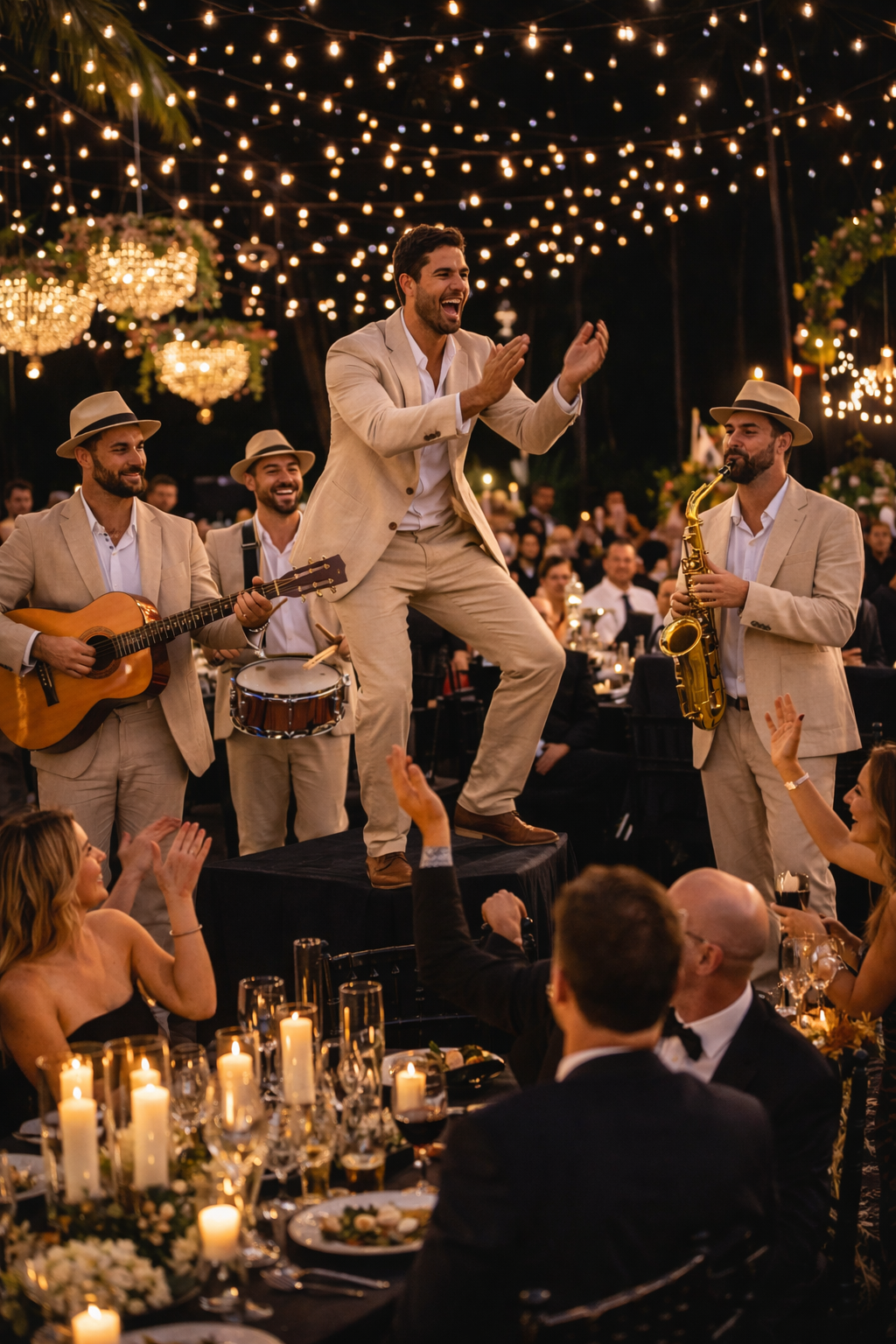 With a versatile repertoire of classics and modern favourites, guests can request songs on the spot, transforming the atmosphere into a lively, shared experience. Perfect for receptions and social celebrations, this dynamic roaming band keeps the energy flowing and the entertainment feeling personal, engaging, and unforgettable.